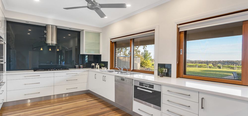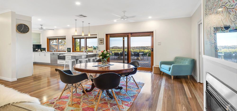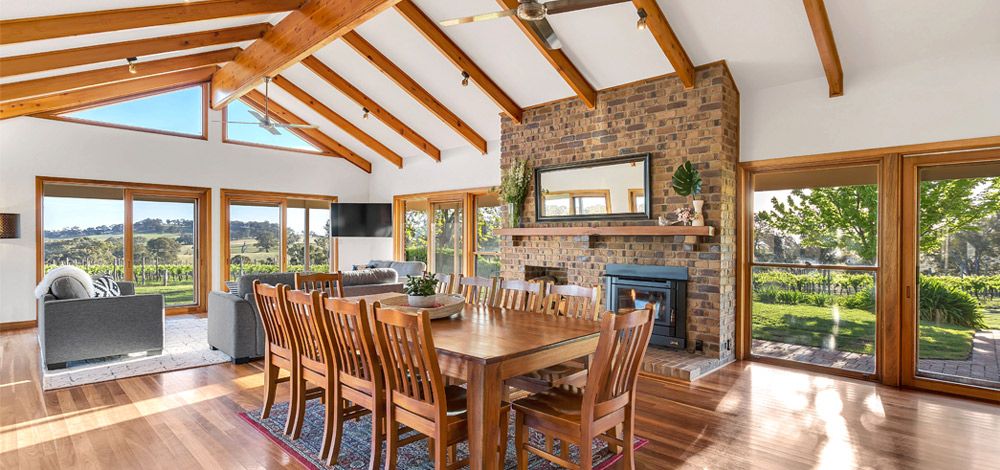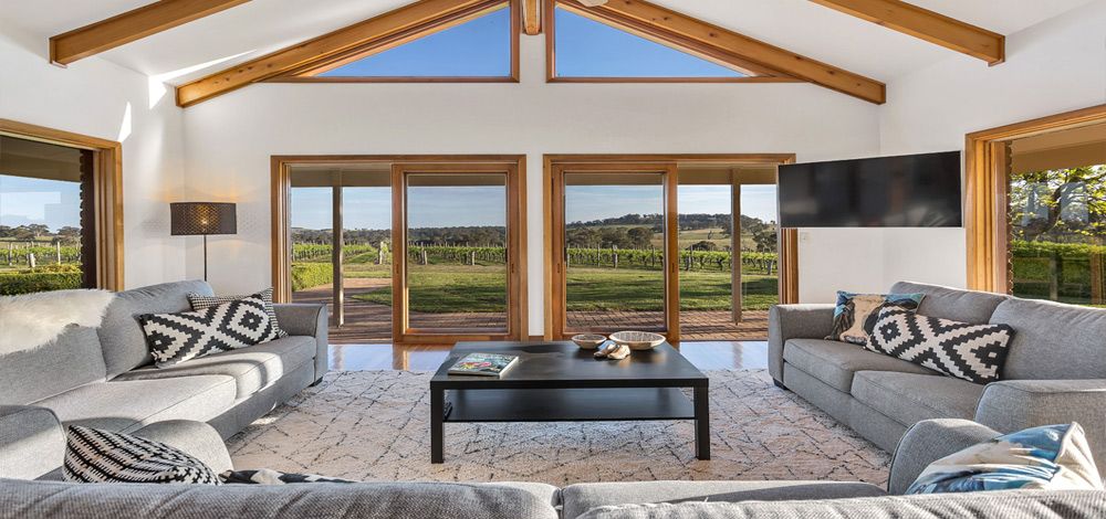 Experience the best in vineyard accommodation at Simon Tolley Lodge in South Australia’s world-renowned Adelaide Hills wine region. — Surrounded by 56 acres of land, and set amongst 32 acres of functioning vineyard (owned and operated by Simon Tolley Wines), this luxury five bed accommodation boasts spectacular vineyard and hills views from each corner and every room. — The Lodge offers all of the luxury amenities of home, and more - including full gourmet kitchen, indoor and outdoor entertaining spaces, your own private bar area, and free wifi. — Located less than an hour from Adelaide, within minutes you can enjoy world-class winery experiences, taste the best in local produce at award-winning restaurants, and explore the picture-perfect towns that surround. — Simon Tolley Lodge is the perfect choice for discerning guests looking for a truly unique and memorable escape in a spectacular vineyard setting.